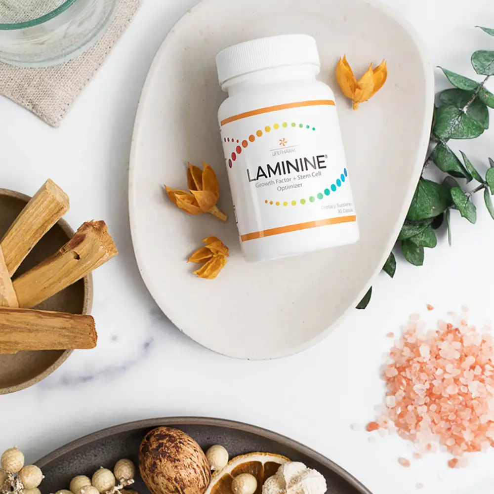 Factorii de creștere din LAMININE stimulează celulele stem ale corpului să regenereze și să repare celulele deteriorate din toate organele din organism. Regenerarea celulară sănătoasă diminueaza inflamația cauzata de stresul oxidativ (imbatranirea tesuturilor) si atenueaza durerile și rigiditatea articulațiilor, menține nivelurile sănătoase de zahăr din sânge și de colesterol, îmbunătățeste integritatea mucoasei digestive și a vaselor de sânge, susține fertilitatea la bărbați, si multe, multe alte beneficii.